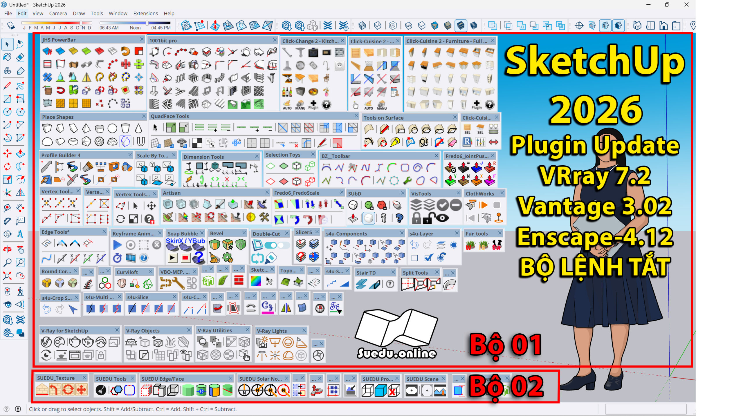Bạn có thể liên hệ đặt mua bộ cài full đầy đủ nhất: SketchUp 2023 + Plugin tổng hợp mới nhất + Vray 7+Vantage + Enscape: